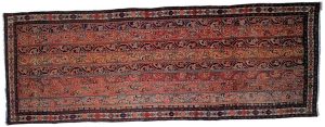 عرض فرش در متن به چند ردیف تقسیم و هر ردیف آن از رنگ و طرح مشخص از ابتدا تا انتهای فرش ادامه پیدا میکند و به طور راه راه ترسیم می شود.