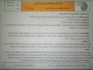 هشدار سطح نارنجی هواشناسی استان فارس