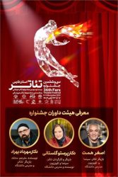 سی و ششمین جشنواره تئاتر استان فارس با حضور گروههای نمایشی منتخب از سراسر استان، از ۲۰ الی ۲۳ آبانماه در شیراز برگزار میشود و داوران این دوره مسئولیت ارزیابی آثار و انتخاب برترینهای جشنواره از بین ۲۱ نمایش حاضر در دو بخش صحنه ای و خیابانی را بر عهده دارند.