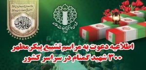 مراسم تشییع ۳۰۰ شهید گمنام در سراسر کشور و ۱۰۰ شهید در تهران از مقابل درب اصلی دانشگاه تهران به سوی معراج شهداء و مراسم شب وداع با پیکرهای مطهر، پیش از تشییع، در محل موزه انقلاب اسلامی و دفاع مقدس اجرا می شود.