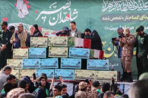 پیکرهای شهیدان گمنام بر دستان نیروهای مسلح از یگانهای منتخب ارتش، سپاه و فرماندهی انتظامی وارد شهر شدند و فضای معنوی و حماسی ویژهای را رقم زدند.